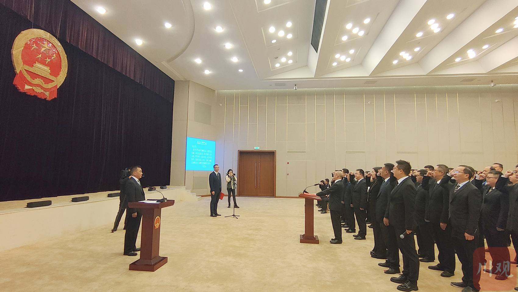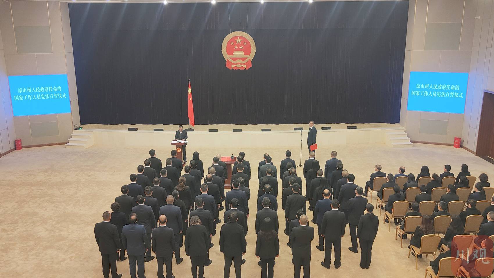 12月4日,凉山州人民政府2023年任命国家工作人员宪法宣誓仪式在西昌举行,61名国家工作人员向宪法宣誓。活动旨在激励和教育州政府部门国家工作人员弘扬宪法精神,忠于宪法、遵守宪法、维护宪法,依法履职尽责,加快推进法治政府建设。凉山州委副书记、州长阿石拉比监誓。
