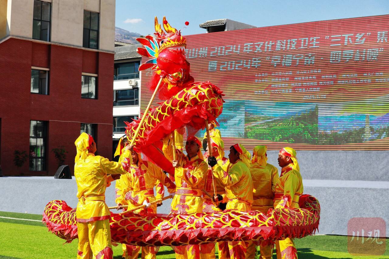 在活动现场,还有丰富多彩的文艺表演吸引大家的眼球。民俗节目《舞龙灯》尽显独特的地域文旅特色;歌曲《情深谊长》《灯火里的中国》《我爱你中国》《我和我的祖国》唱出了描绘祖国壮丽河山,热情讴歌对祖国的热爱,川剧艺术变脸+吐火更是让现场观众连连称赞。