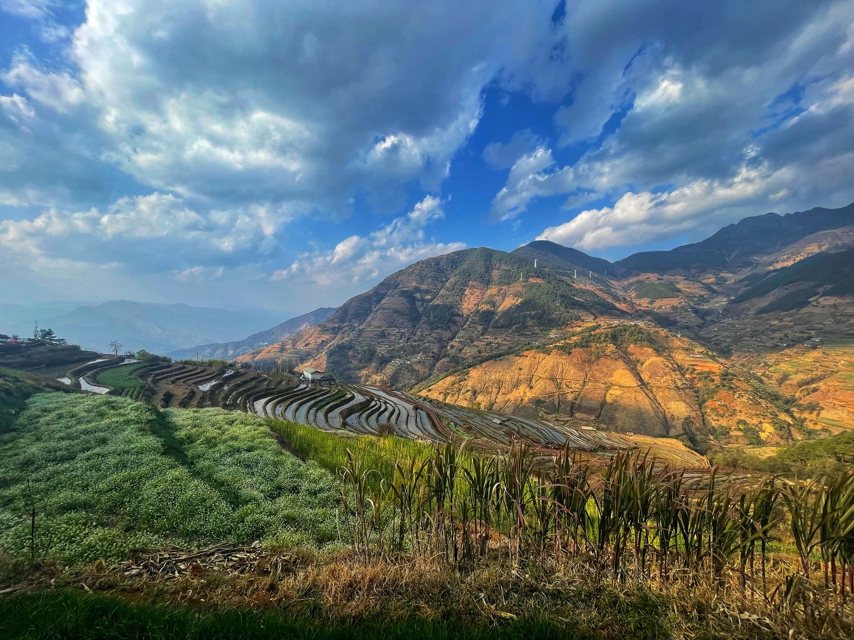 阳光也赋予了生长在这片土地上的人们别样的热情——行走在新山傈僳族乡梯田景区,上千亩梯田带来的视觉震撼,就像傈僳族的传统习俗“拦门酒”,直接而热烈。