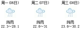 据四川省气象台分析,预计7月6日至7月8日,全省各地多多少少都有降雨,日均最高气温31℃~34℃,日均最低气温22℃~24℃。