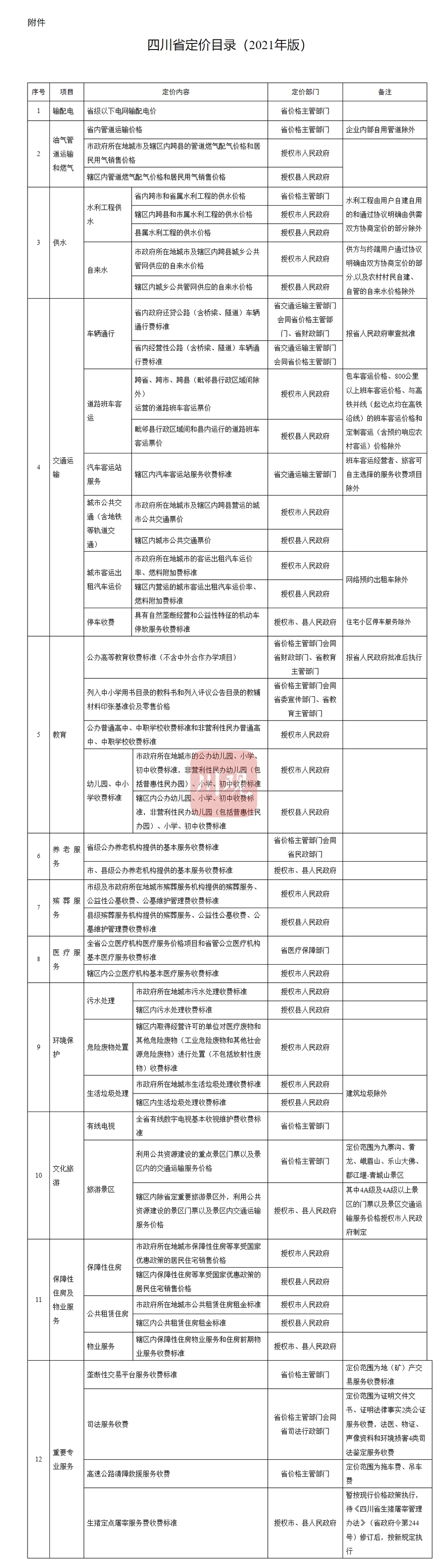 川观新闻记者7月20日从四川省发展改革委获悉,经省政府同意,并报国家发展改革委审定,《四川省定价目录(2021年版)》近日正式印发。