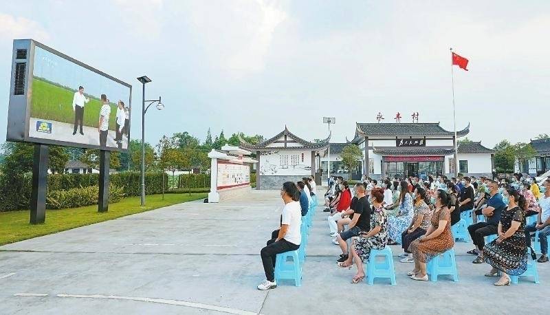 6月9日晚,眉山市东坡区太和镇永丰村干部群众一起收看中央广播电视总台新闻联播播出的习近平总书记来川考察的新闻报道。四川日报全媒体记者 吴聃 摄