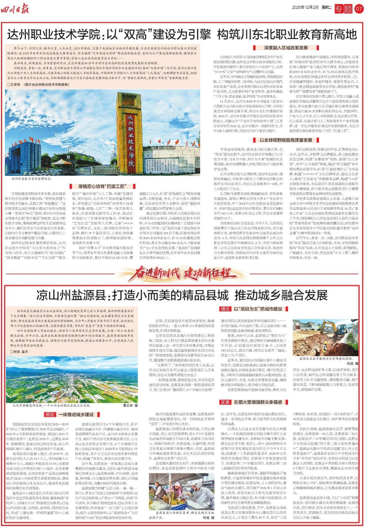 12月2日,四川日报第7版刊发文章《打造小而美的精品县城 推动城乡融合发展》,聚焦今年以来盐源县统筹推进新型城镇化和乡村全面振兴,高质量推进城市更新,增强城市综合承载能力,持续优化城市空间结构,提高公共服务水平,不断满足人民群众对宜居生活的需要。