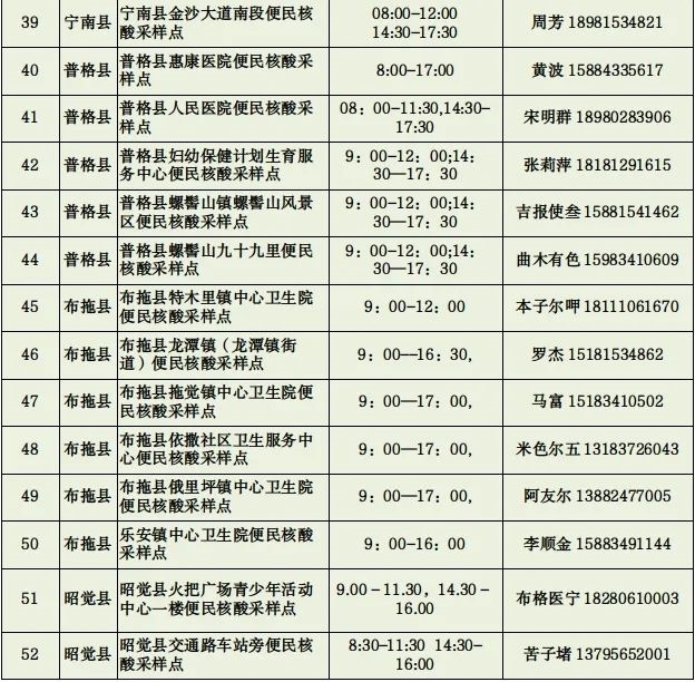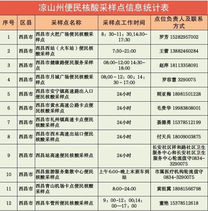 为满足广大群众核酸检测需求,现将最新凉山州便民核酸采样点信息公布如下。