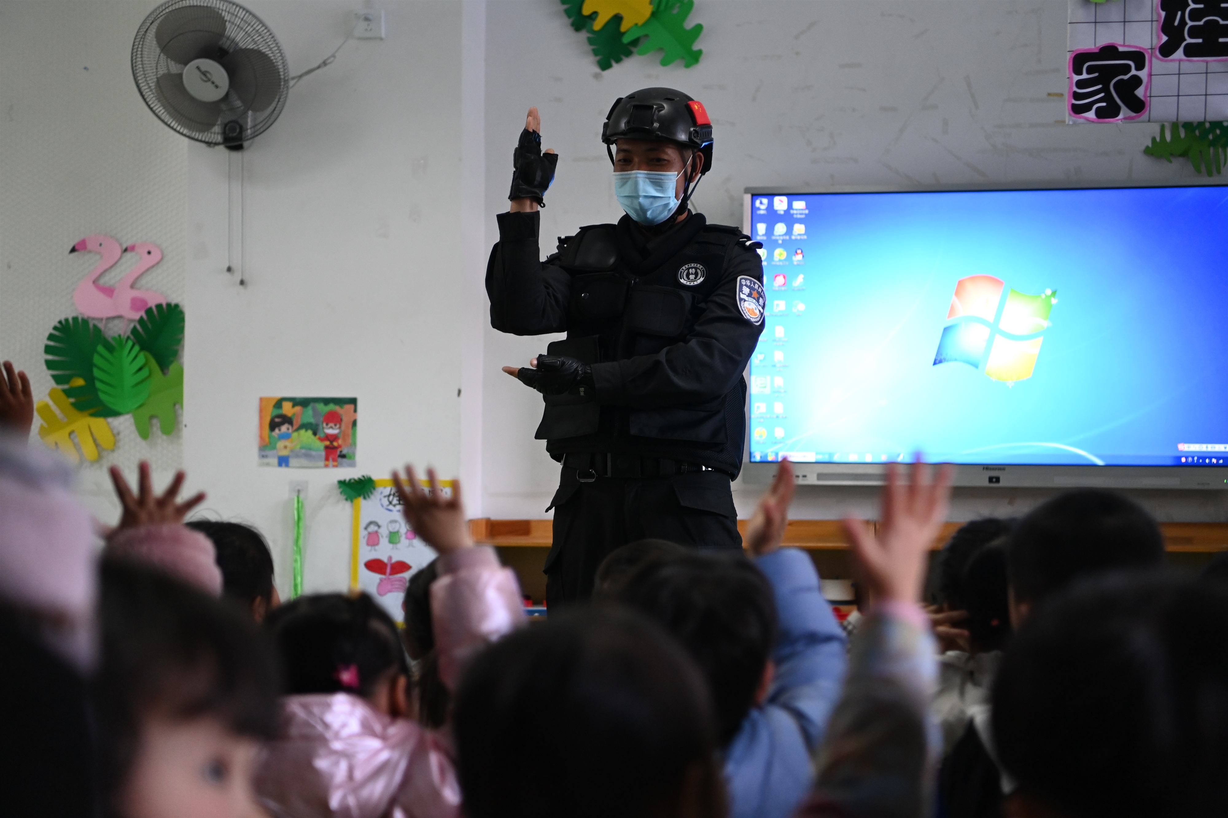 开学季,为提高孩子的安全防范意识和自我保护能力。3月3日下午,成都铁路公安局西昌公安处组织特警队员,走进西昌市蓝天幼儿园,开展了一场“防拐”模拟演练。