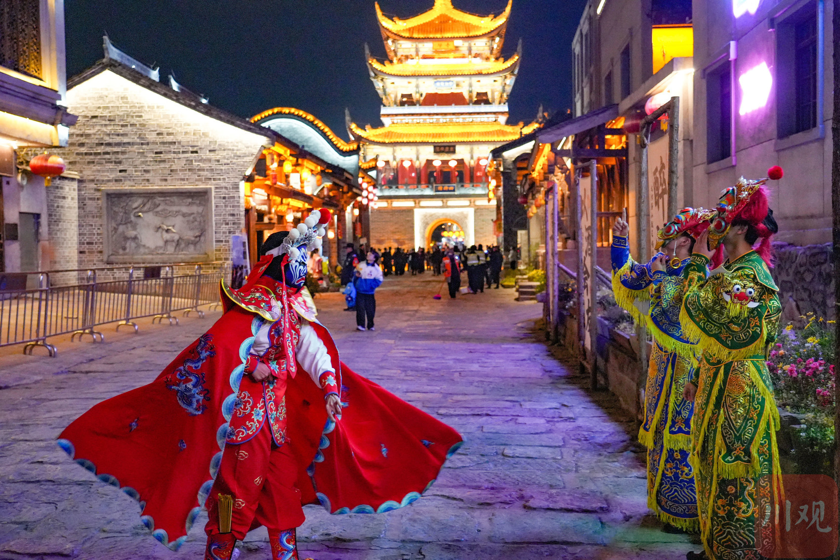 12月24日,夜幕下的建昌古城流光溢彩。大通门前,身着传统汉服的礼官手持礼牌宣礼迎宾。在人群欢呼声中,开城仪式拉开序幕。
