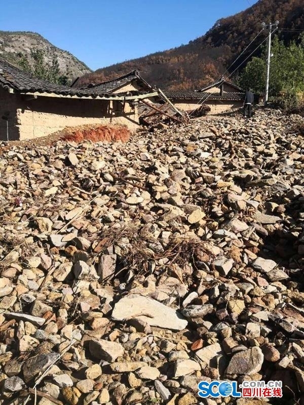 该泥石流灾害位于喜德县鲁基乡中坝村一组,灾害规模约7300立方米,造成房屋及耕地不同程度受损,但幸运的是因为人员及时撤离,没有出现伤亡。