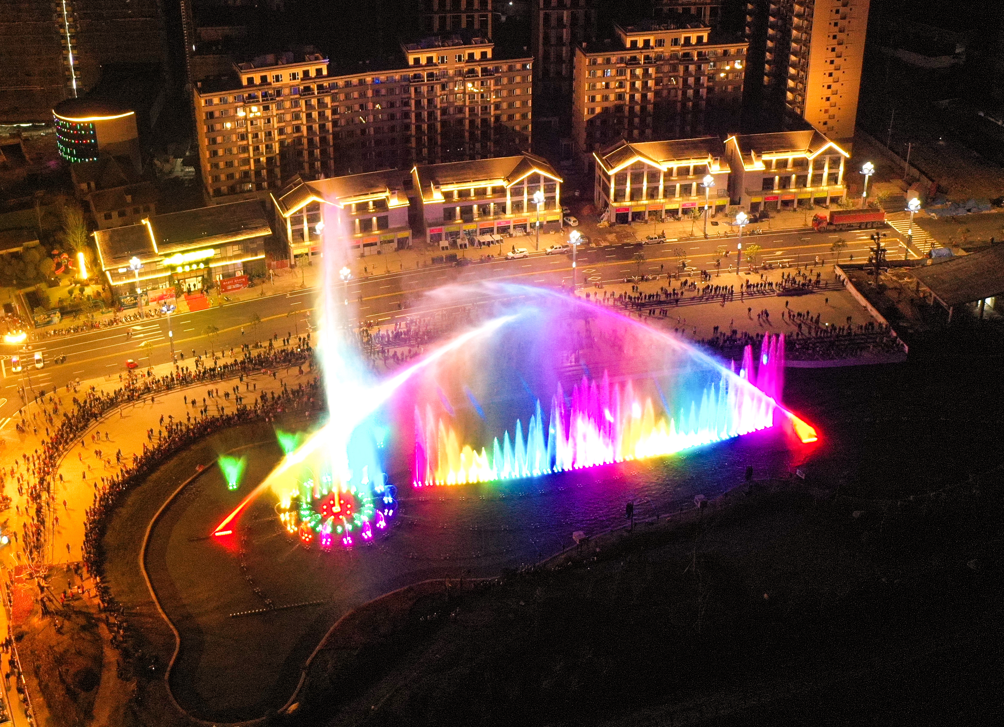 节庆期间,从现代城区到古朴乡村,多元化的文旅业态共同点燃了消费热情。在县城,精彩的文艺晚会吸引了大量居民与游客驻足,管乐合奏与民族舞蹈等节目赢得了阵阵喝彩。作为打卡热点的凤凰城省级旅游度假区,其地标建筑凤凰阁向公众免费开放,与律动的音乐喷泉、充满人间烟火气的夜间集市相辅相成,让游客从早到晚都能找到乐趣。
