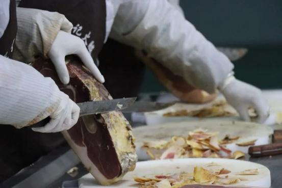 在冕宁县余记火腿食品有限公司生产车间,工人们正忙着切割、修整、包装、运输……发酵车间里,成千上万只火腿整齐悬挂,经过近一年的自然发酵,火腿醇香渐浓。