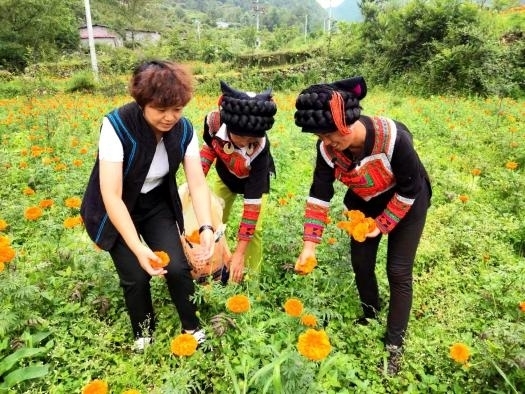 瓦岩村驻村第一书记沙马石古介绍:“今年,我们村在发展烤烟生产的基础上,对花椒基地进行提档升级,在省作协的帮扶下,种植100余亩万寿菊。目前,万寿菊长势喜人,这不仅能给村集体经济带来收入,还能为老百姓分得红利,为我们将来发展多元化产业起到了示范引领作用。”