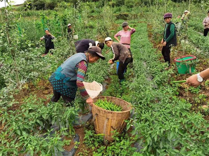 四川在线消息(文/图 阿牛阿木)近日,越西县书古镇足吾村苹果基地里套种的“千亩辣椒”喜获丰收,第一批果实开始采摘。