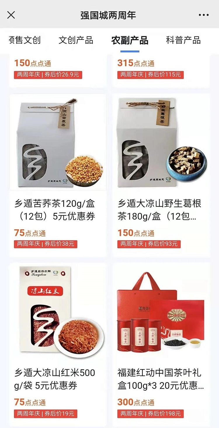 四川在线消息(文/图 王迪)10月22日,由凉山乡遁商贸有限公司打造的具有越西特色农特产品正式入驻“学习强国”“强国城”。