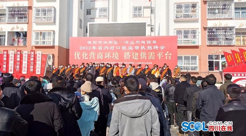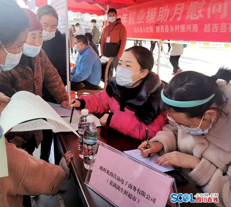四川在线消息(文/图 凌江)为持续优化越西营商环境,搭建就业招聘平台,推动农民工高质量就业,1月22日,由越西县人力资源和社会保障局举办的2022年就业援助月现场招聘会暨“春风行动”专场招聘会举行。