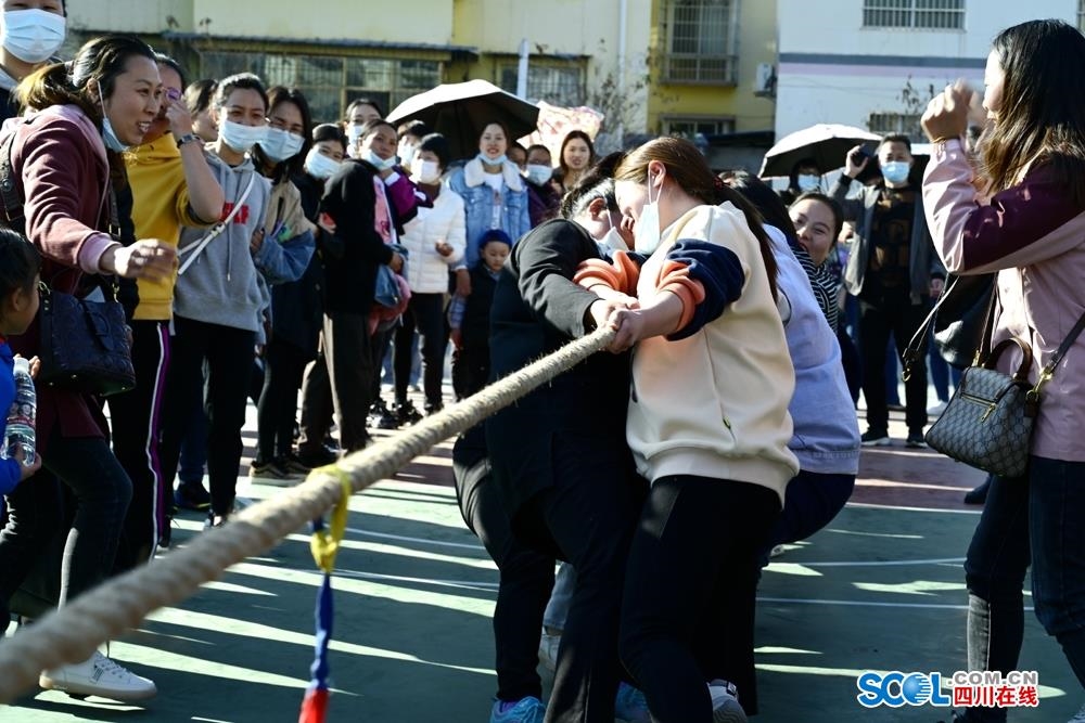 随后,随着一声哨响,各妇女代表队开始了她们精彩的文体比赛活动。大家争先奋勇,团体合作,展示着她们的巾帼风采。本次活动设置了集体项目拔河比赛,单人项目单人跳绳以及组合项目乒乓球接力赛、背夹球、两人三足接力。
