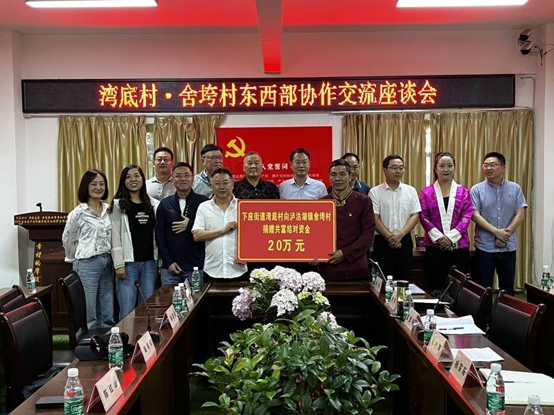 在泸沽湖镇舍垮村,代表团考察了摩梭人母系氏族非遗文化,并向结对的舍垮村捐赠了“共富结对资金”20万元,以助力舍垮村集体经济发展,双方以党建引领村集体经济发展为主题进行了探讨交流。