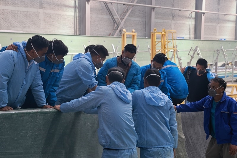 1月31日,位于盐源县工业集中区里的东方电气(盐源)新能源设备有限公司风电叶片生产车间内,玻纤裁剪、注胶成型、合模喷漆……工人们正在自己的工位上认真地工作,每一道工序皆井然有序,现场一派繁忙景象。