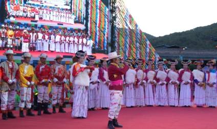 舞蹈《甲搓欢歌》、歌曲《天上摩梭》《摩梭吉祥谣》《花腰带》等表演给观众展示了丰富多彩的摩梭文化,传播了独特的民族风情。藏族舞蹈《牧区》《吉祥欢歌》,彝族达体舞展示了多民族文化风采,展现了泸沽湖镇各民族和谐交往、交流交融的文化盛景。