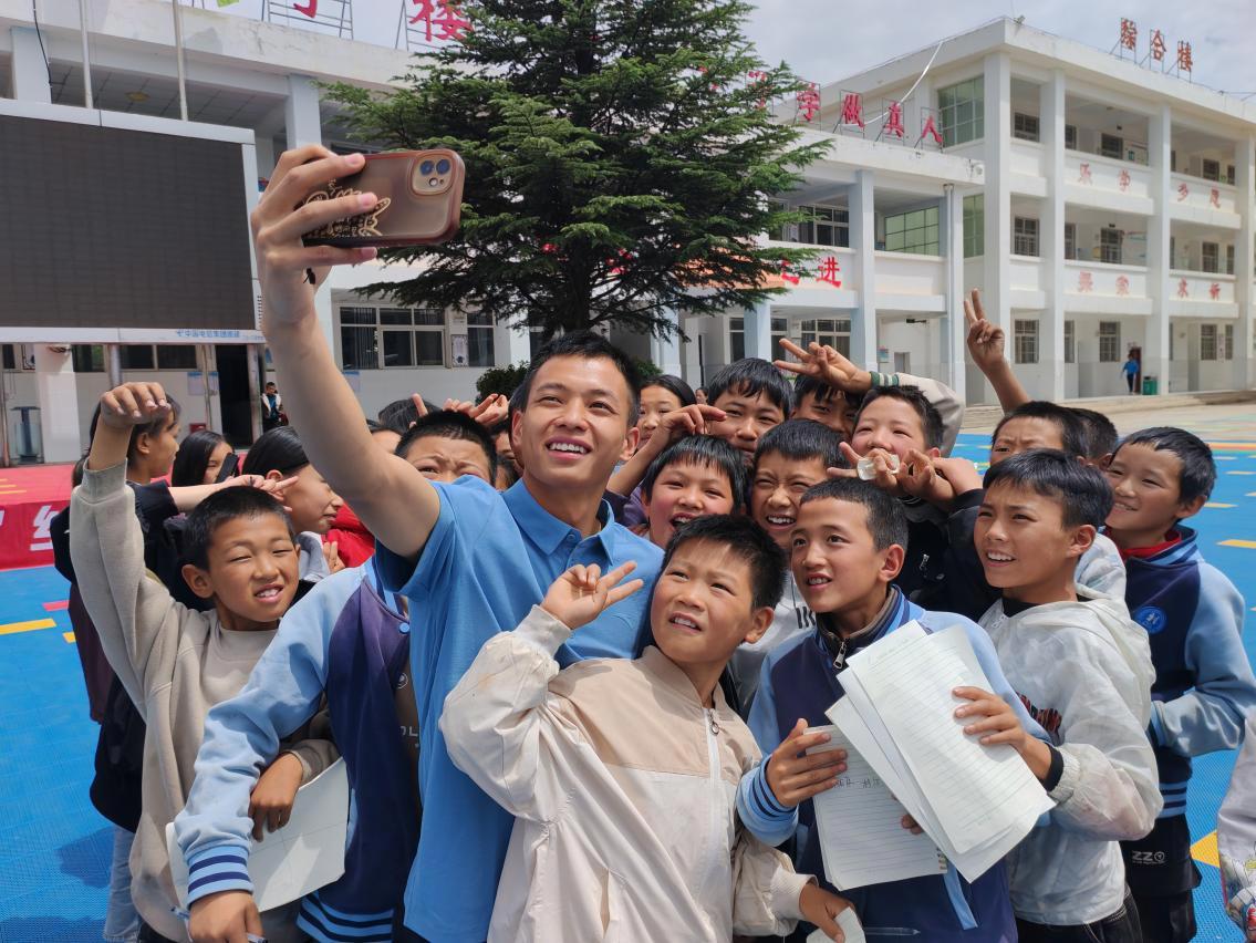 2024年,吉朵克布等同学成为第二批支教志愿者。面对体育器材缺乏、艺体师资不足,吉朵克布一周要上20余节课,他将接力跳绳、趣味投篮等体育游戏带入课堂,让孩子们爱上运动。