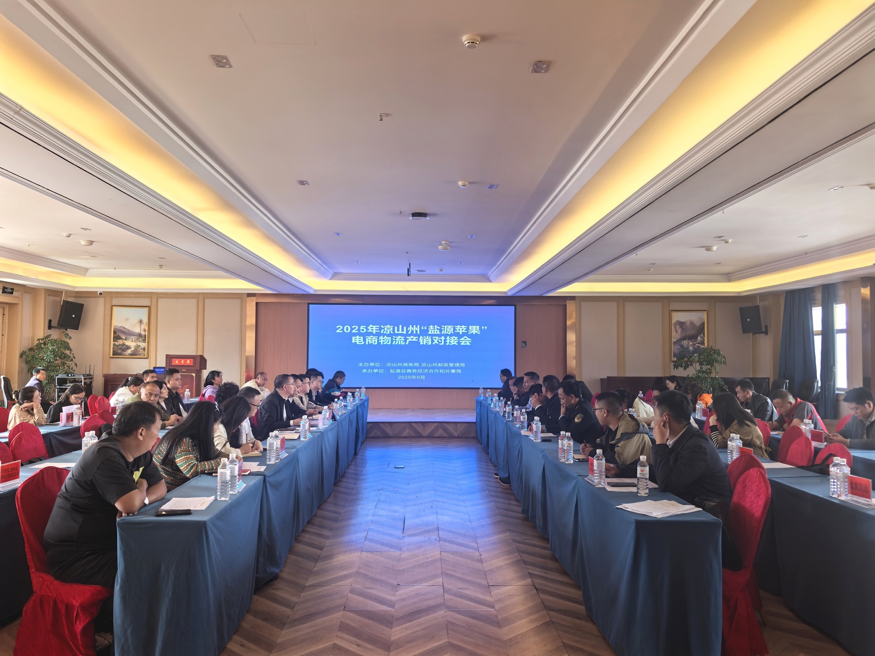 该对接会由凉山州商务局联合州邮政管理局举办。“盐源苹果”产品供应商、电商企业、采购商等交流发言。
