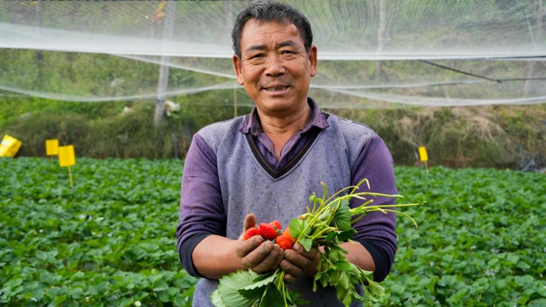 “我家今年种了三四亩草莓,能一直采摘到2026年二三月份,亩产可达1000公斤至1500公斤。”草莓种植户熊仕勇介绍说。