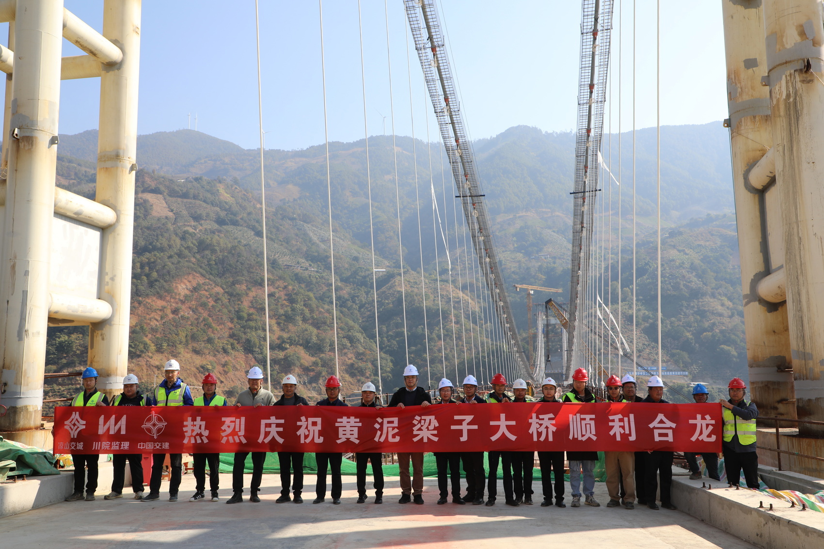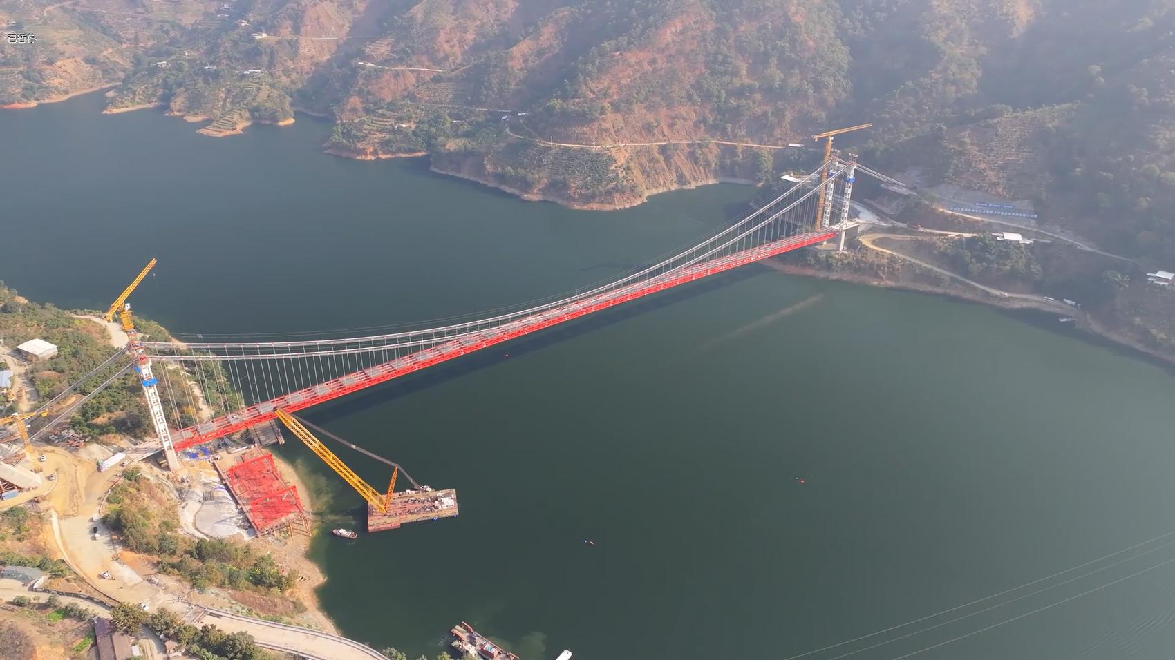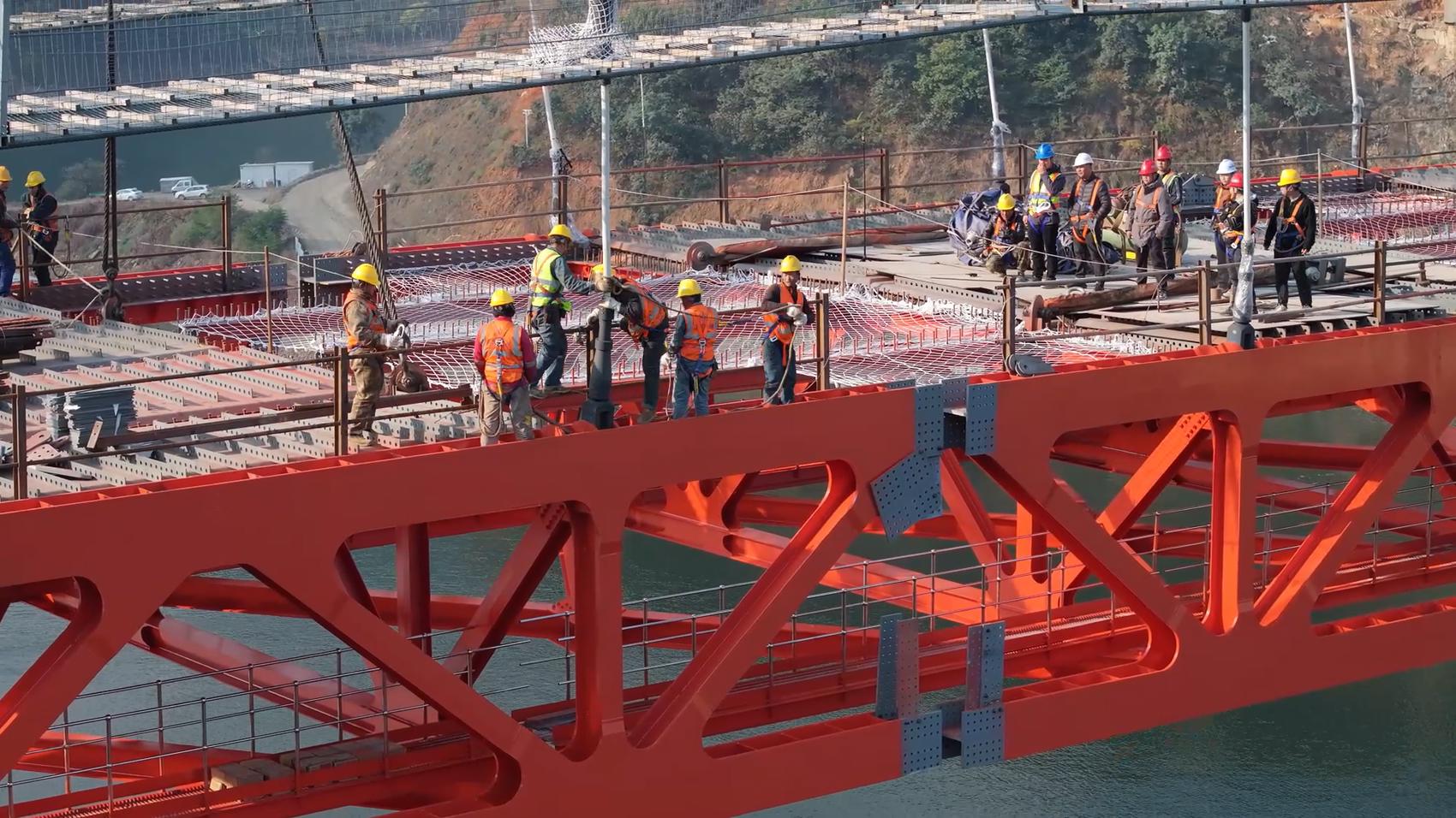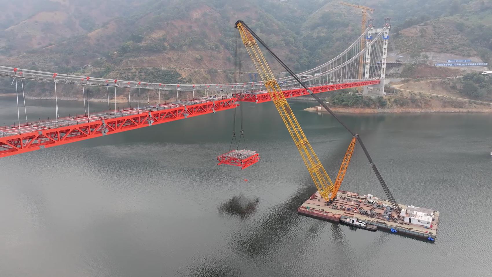 近日,随着最后一段钢桁梁精准吊装并完成连接,黄泥梁子大桥钢桁梁悬索桥实现关键性胜利—主桥钢桁梁顺利合龙,桥梁主体结构全线贯通。这座跨越雅砻江的“钢铁巨龙”成功牵手,为大桥按期建成奠定了坚实的基础。