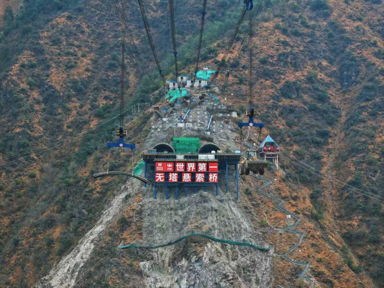 理塘河特大桥是西香高速“九大超级工程”之一,位于木里支线后所乡与列瓦镇交界处的V形峡谷中。它是目前世界上最大跨度、国内首座高速公路无塔悬索桥,桥梁缆跨696米,梁跨506米,计划2027年底贯通。缆索吊系统全面就位后,形成了高效协同的“空中矩阵”,将全面提速大桥主体施工进程,有力推动西香高速木里支线早日通车。